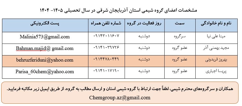 گروه شیمی دوره دوم متوسطه استان آذربایجان شرقی یک سایت اداره تکنولوژی و گروه های آموزشی استان آذربایجان شرقی سایت دیگر